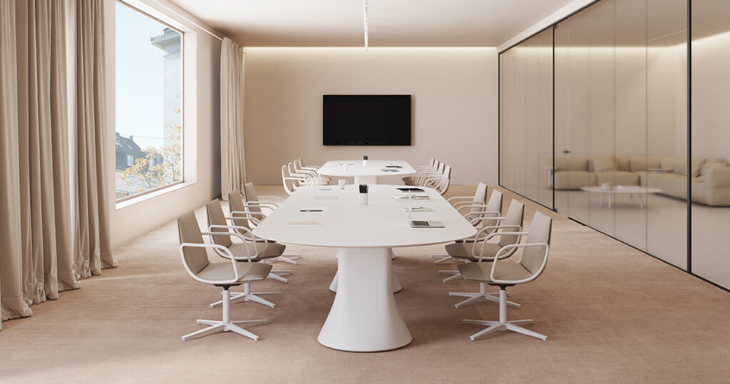 Avec son apparence épurée, sa clarté fonctionnelle et ses options de configuration flexibles, CAMBIO s’intègre parfaitement dans les salles de réunion modernes où efficacité, liberté de mouvement et esthétique claire sont prioritaires.